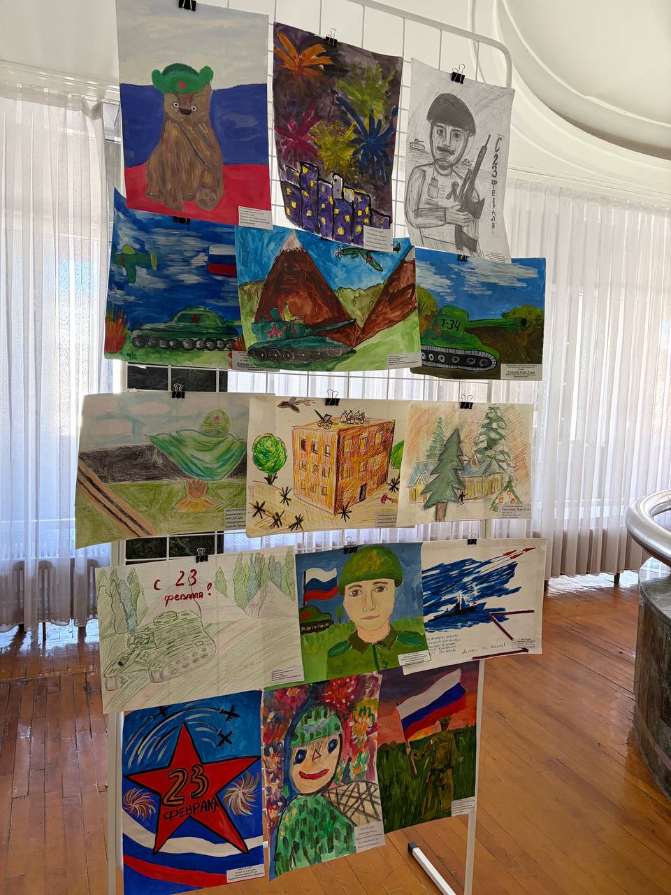 На полотнах и в рисунках оживали образы военных профессий, мощь боевой техники и другие сюжеты, прославляющие защиту Отечества. Особое место занимали поделки: танки, самолеты и корабли, созданные из бумаги, картона, пластилина и даже самых неожиданных материалов, отражали старание и уникальный взгляд каждого ребенка.