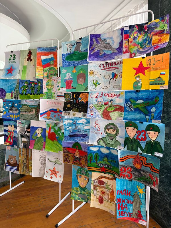 На полотнах и в рисунках оживали образы военных профессий, мощь боевой техники и другие сюжеты, прославляющие защиту Отечества. Особое место занимали поделки: танки, самолеты и корабли, созданные из бумаги, картона, пластилина и даже самых неожиданных материалов, отражали старание и уникальный взгляд каждого ребенка.