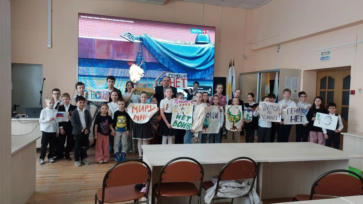 В ходе мероприятия Вадим Саидович рассказал присутствующим об истории появления и значении знаменитого указа Президиума Верховного Совета от 19 апреля 1943 года N 39 «О мерах наказания для немецко-фашистских злодеев, виновных в убийствах и истязаниях советского гражданского населения и пленных красноармейцев, для шпионов, изменников родины из числа советских граждан и для их пособников». Кроме того, были зачитаны отрывки из воспоминаний советских граждан-свидетелей преступлений гитлеровских изуверов. Также на мероприятии были процитированы строки из федерального закона от 09.04.2026 г , N 100 ФЗ «Об ответственности за реабилитацию нацизма, попытки отрицать или оправдать геноцид советского народа». В ходе урока памяти обучающиеся детского объединения «Основы этики», продемонстрировали плакаты с осуждением геноцида, высказали обвинения в адрес фашизма, прочли стихи в память жертв немецко- фашистских извергов. Мероприятие завершилось минутой молчания, посвящённой жертвам геноцида.
